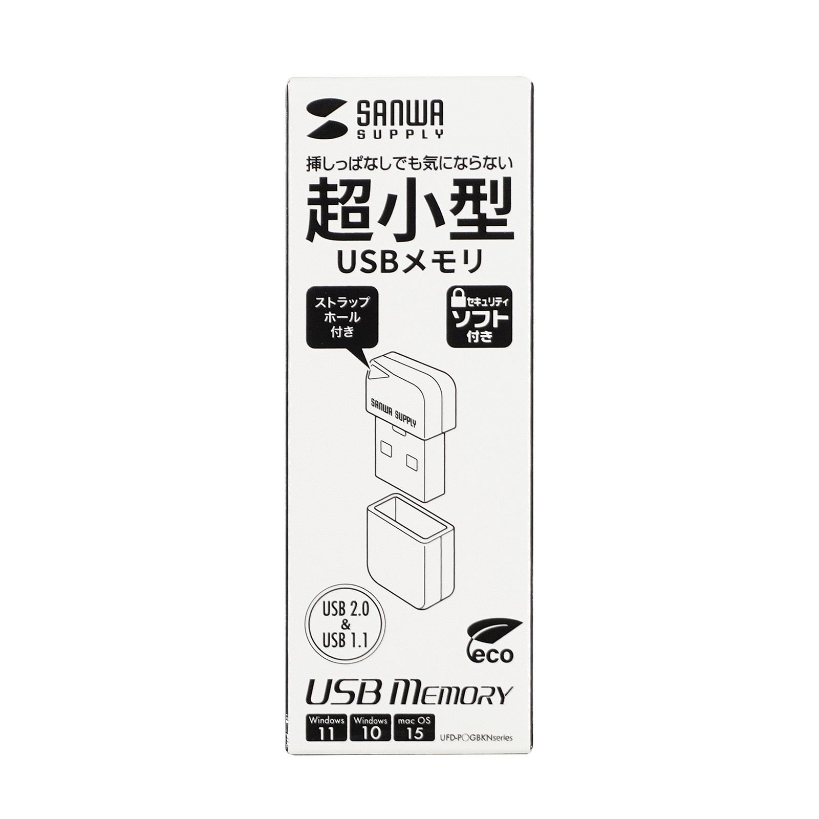 UFD-P〇GBKN シリーズは、サンワサプライから発売されている超小型のUSBメモリ。「〇」の部分には容量(8GB、16GB、32GB)が入る。差しっぱなしでも邪魔になりにくいデザインが特徴。シンプルな小型のUSBメモリがほしいユーザーにおすすめ。コスパもいい。余計な機能を搭載せずに超小型サイズに絞っている。