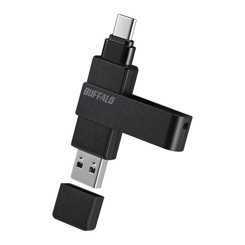 本製品のインターフェースはUSB 3.2(Gen1)に対応しており、下位互換性としてUSB 3.1(Gen1)、3.0、2.0とも接続可能である。端子の形状はUSB Type-AとUSB Type-Cの2種類を備えたデュアルコネクタ仕様で、容量は32GB、64GB、128GB、256GBの4種類が用意されている。対応OSはWindowsおよびMacであるが、詳細な対応状況はバッファローの公式サイトで確認する必要がある。