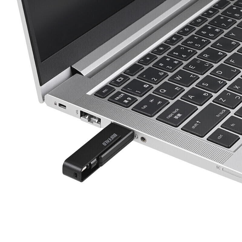 - 携帯性・サイズ:非常に小型で軽量(約9g)なため、携帯性は高い。ノートパソコンに挿し込んでも邪魔になりにくいサイズ感が好評である。