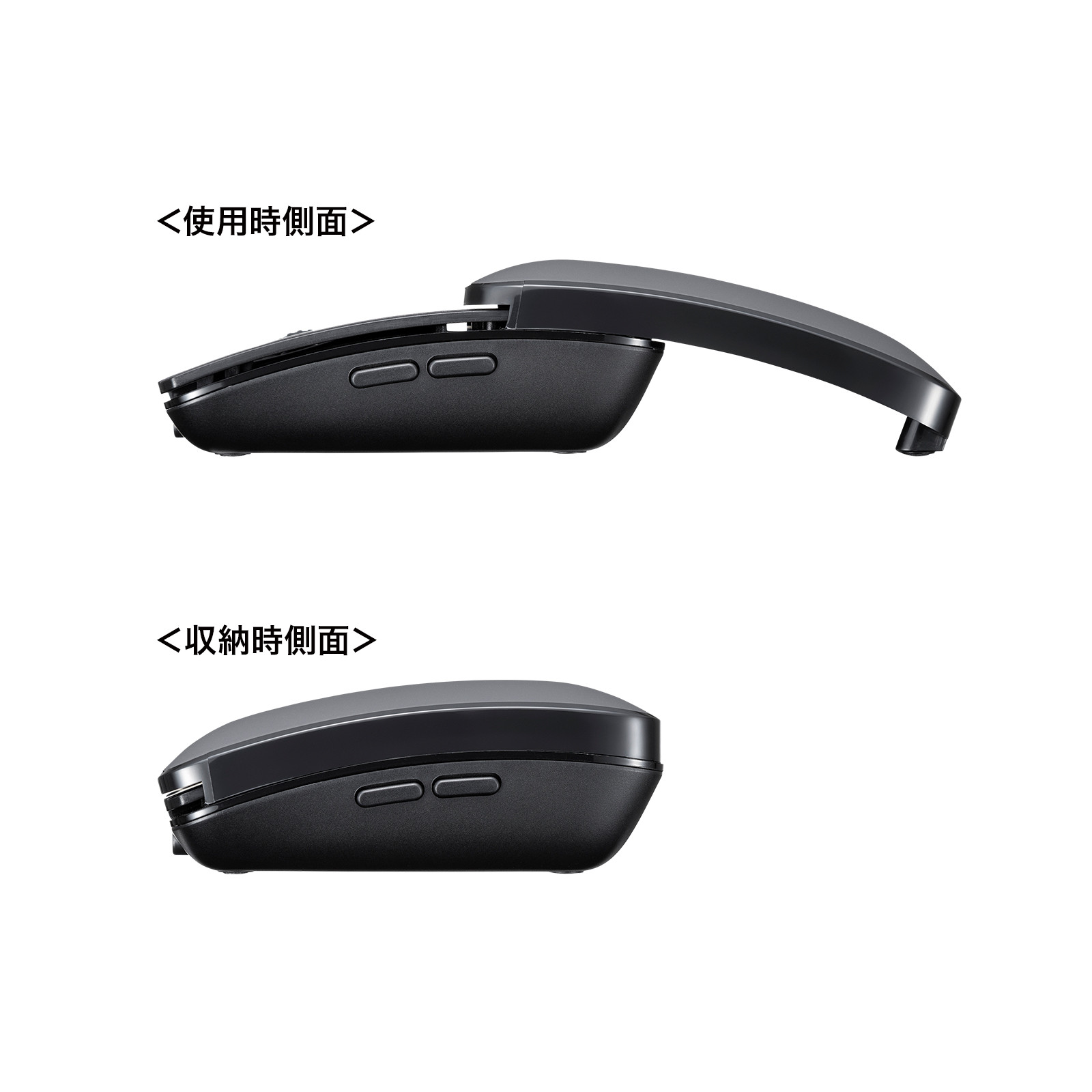 A3. 使用時はスライドを伸ばした形がマウスとしての通常の状態となる。縮めた状態は電源OFFの携帯モードであり、操作には適さない。