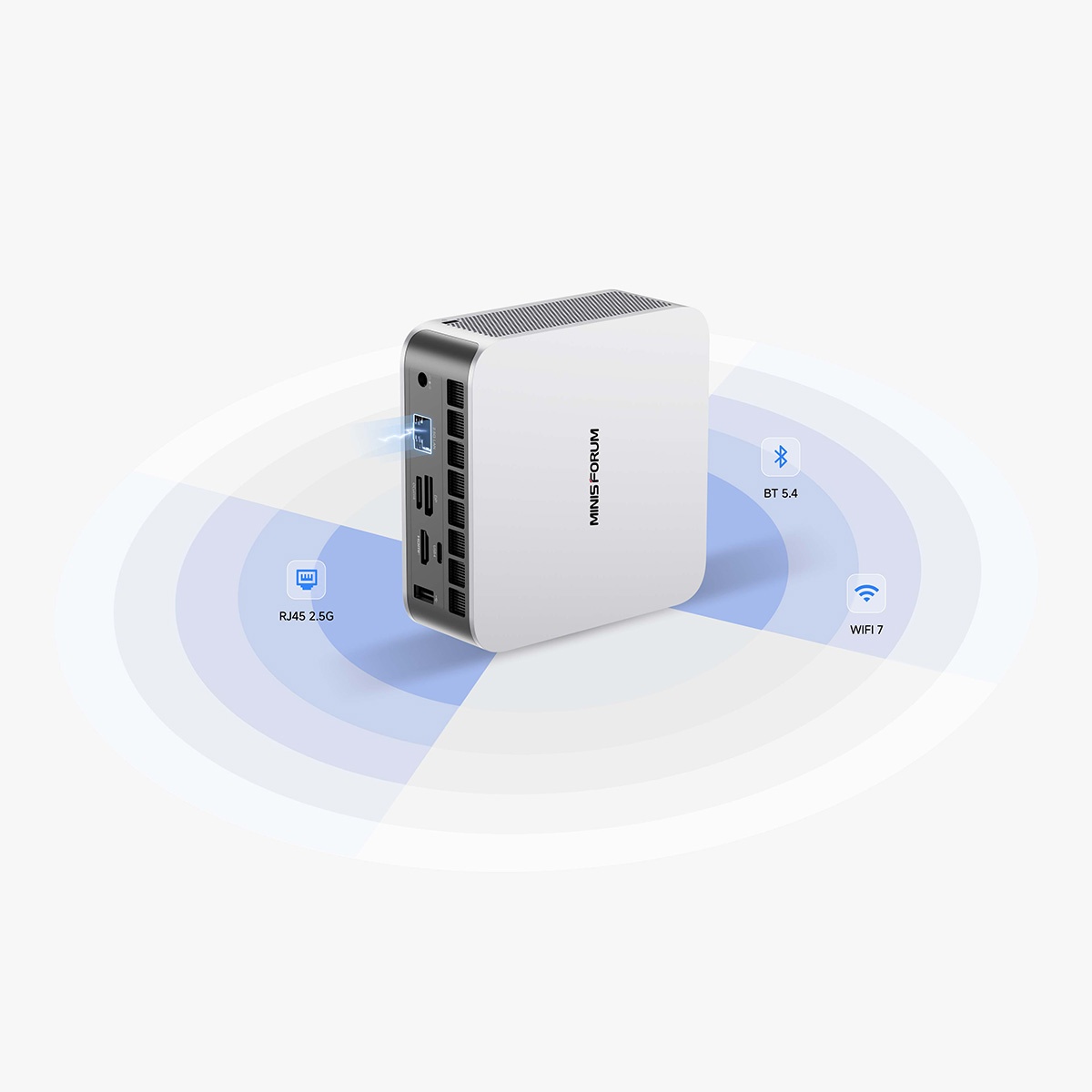 MINISFORUM AI X1は、Mac miniと見紛うほどの超小型ボディに高性能なAMD Ryzen プロセッサを搭載したミニPC。一般的なオフィスワークはもちろん、クリエイティブな作業や軽めのゲームにも対応できる実力を持ちながら、デスクに置いても場所を取らないデザインと、非常に高い静音性を実現している。