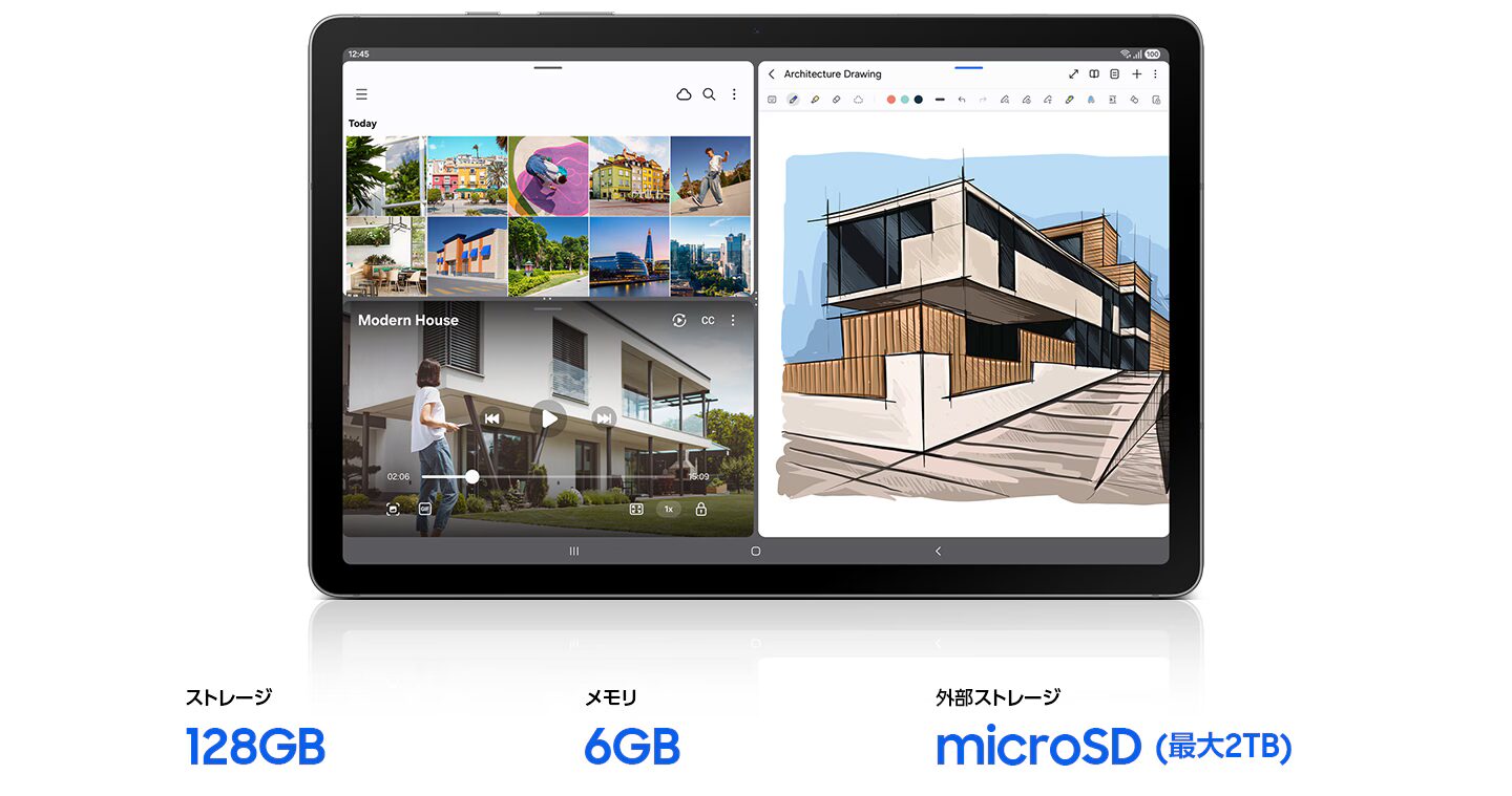 - 「書く」ことに特化した設計: 充電不要のSペンが同梱されており、4096段階の筆圧検知に対応。