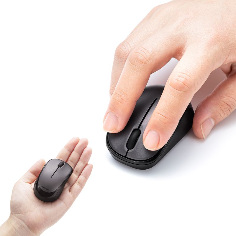 - 省スペースでの操作: マウス自体が小さいため、カフェの小さなテーブルや新幹線のトレイなど限られたスペースでも操作しやすい。